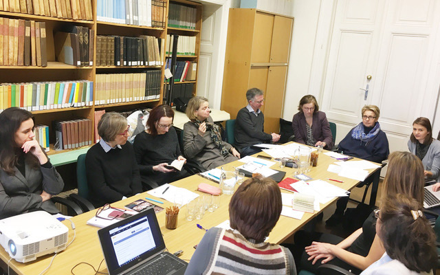 Predstavnice avstrijskega partnerja, dr. Eva Klein, prof. dr. Margit Stadlober in dr. Dagmar Probst z umetnostnozgodovinskega inštituta na Univerzi v Gradcu so 8. in 9. februarja 2018 gostile predstavnike iz Hrvaške in Slovenije ter kolege z Univerze na Dunaju na mednarodnem delovnem srečanju, ki je potekal kot del evropskega projekta »Po sledeh umetnosti družine Straub«. Takšna srečanja so namenjena predvsem preučevanju in izmenjavi rezultatov pri raziskavah umetnostnega opusa bratov Straub.