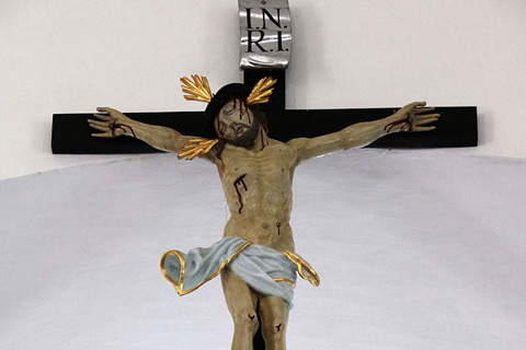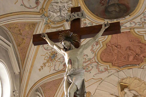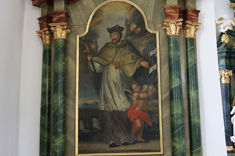 Na podoben način je bila izdelana tudi kiparska skupina sv. Alojzija Gonzage, ki jo je J. Streiter naredil za nasproti stoječi stranski oltar leta 1775. Na oblaku klečečega sv. Alojzija sta na obeh straneh podpirala angela v devocionalni drži. Danes na tem mestu stoji kip patrona sv. Cirijaka, razlog za umik Streiterjevega dela pa danes ni znan. Na predeli prvega stranskega oltarja na levi strani glavne ladje je bilo opaziti še kvalitetno delo Sedečega Kristusa, ki ga Volk v omenjeni monografiji ne omenja.