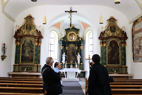 Zatem je skupina obiskala še pokopališko kapelo sv. Leonarda (S Leonhard). Delo Johann Georga in njegovega brata Johanna je v njej dokumentirano v letih 1737/38. Mizar Johannes je izdelal arhitekturni del lesenega velikega oltarja, Johann Georg pa je poskrbel za kiparski del na oltarju in izdelal tudi Križanega. Kvaliteta kipov je vidno slabša od tistih iz Hochenstadta. Tako bi bilo potrebno prižnico v Hochenstadtu, ki je tradicionalno pripisana starejši generaciji družine Straub, postaviti pod vprašaj, s čimer so se strinjali tudi vsi udeleženci študijskega obiska.