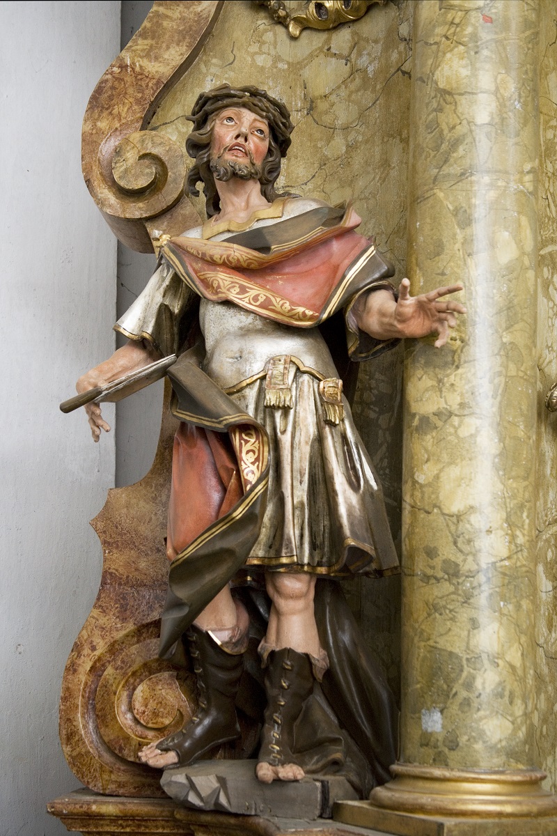 The two sculptures, representing St Bartholomew the Apostle and St Christopher on the altar of the Holy Family in the north Chapel of the parish church of St Stephen in Spodnja Polskava were attributed to Joseph Straub by Sergej Vrišer.1