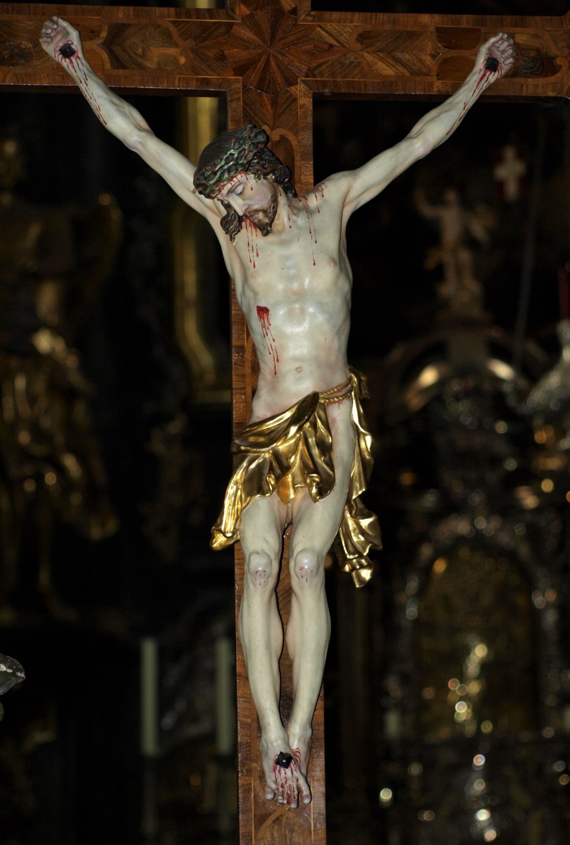 The processional cross in the nave of the pilgrimage church Mariahilf in Graz