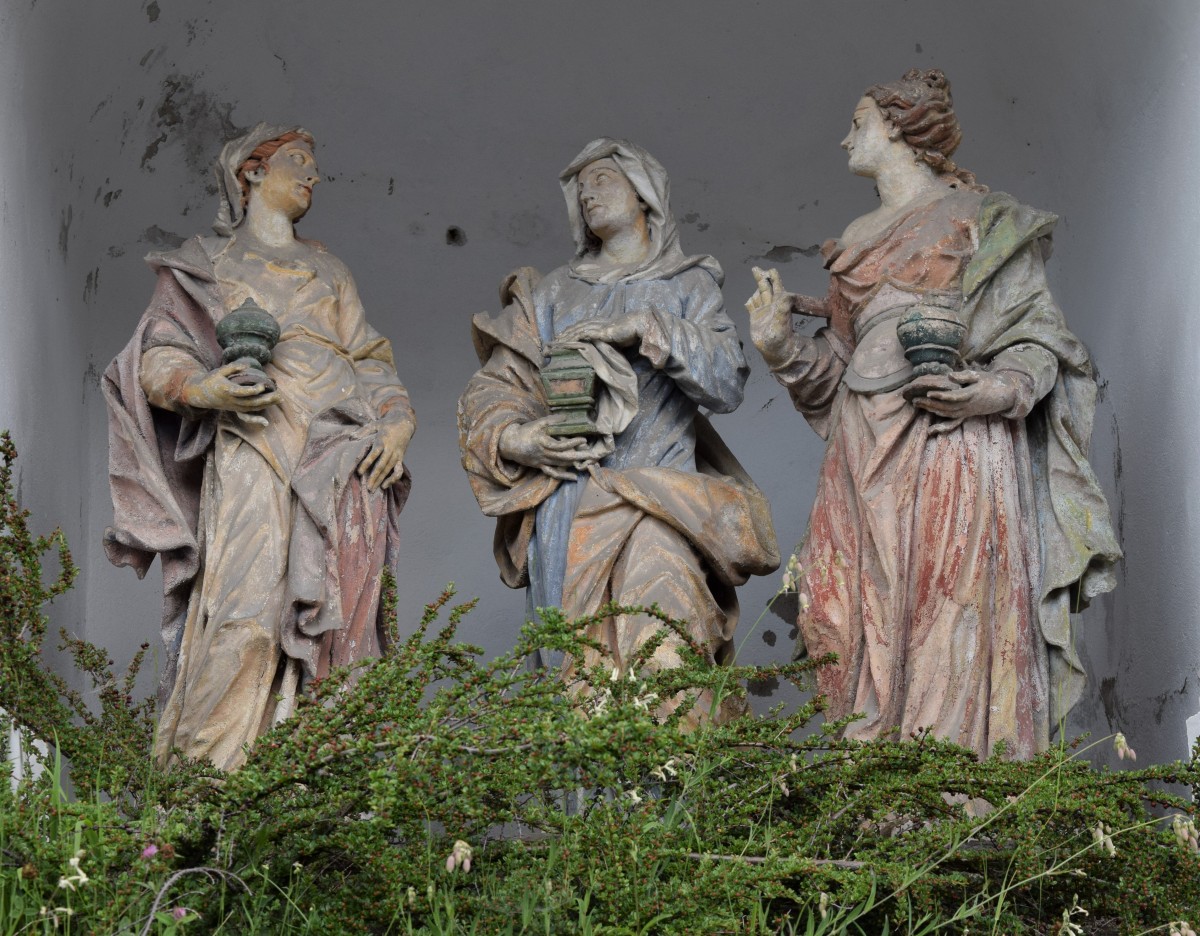 The sculptural group of Mary Magdalene, Mary and Salome in a chapel of the Calvary in St Radegund (photo by Christina Pichler, 2018)
