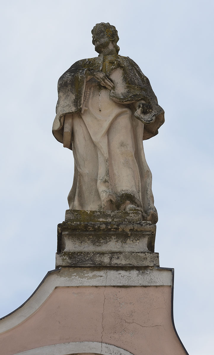 The façade of the ursuline church in Varaždin is decorated with six sculptures dating from different periods. According to Doris Baričević, four of them – two angels and the sculptures of St John of Nepomuk and St Francis Xavier – bear features of the sculptor Joseph Straub.1 They were probably erected during the enlargement of the church and the monastery in the period 1747–1752 when the façade was completed with a round pediment and side volutes bearing four bases for the sculptures. The reconstruction was a donation of the Zagreb archdeacon Sigismund Szinersperg, so there is a probability that the sculptures were a donation of the same patron as well.2