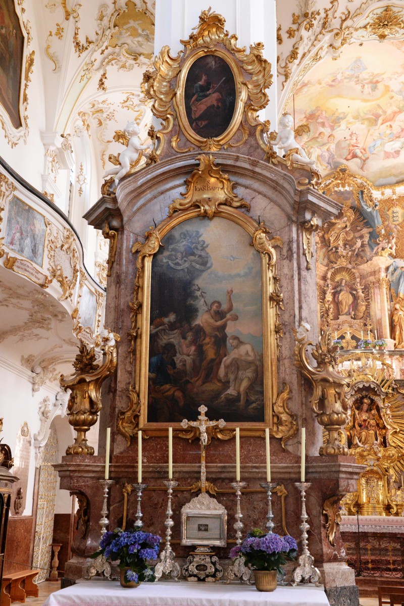 Left Side Altar of St John the Baptist in the Benedictine Abbey and Pilgrimage Church of Sts Nicholas, Elisabeth and Mary in Andechs