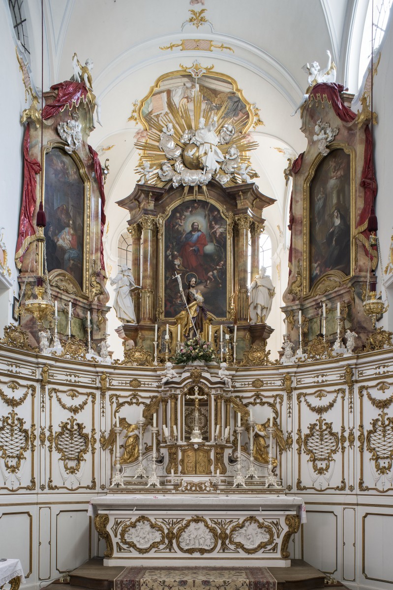 the high altar „St. Salvator“, painting "St. Salvator" by Ignaz Baldauf (1767), two standing sculptures of Sts Peter and Paul