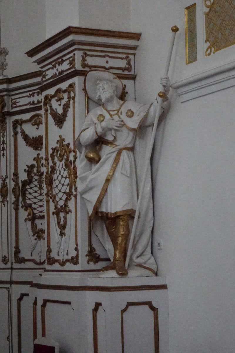 - The sculpture of St James at the choir of the Parish (former Monastery) Church of St Alto and St Biridget, Altomünster (Bavarian State Department of Monuments and Sites, photo by Rupert Karbacher, 2019)