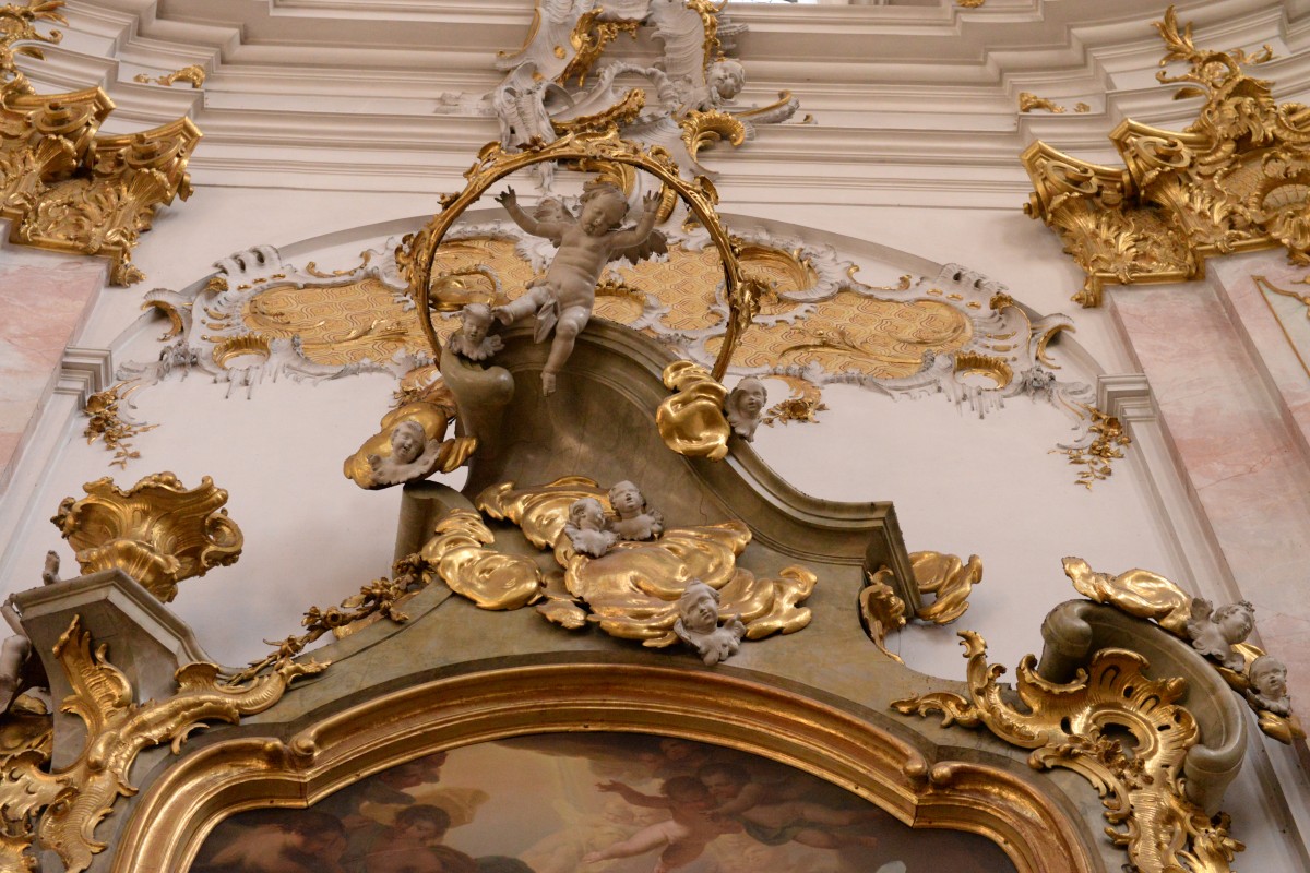 On 30 November 1761, the third and last contract was signed for the four "smaller" side altars. For this, 1200 fl and 50 fl of "Recompens" were promised to Straub. For each altar, without the lower main postaments he had to create and set up "2 Statuen, dan 3 ganzen Englen yber 3 Schuech hoch und 9 bis 10 Englkopf in Bildhauerarbeit und was immer in dieselbe einschlaget, zierlich und in solcher Vollkommenheit, wie das Modell zeiget". Furthermore, he had to produce "die Ramen zu denen heiligen Leibern, iedoch mit Ausschluß deren Sarchen nach dem Model". It was also the Straub 's task to do the "Kistlerarbeit" and purchase the wood. Two altars had to be ready the following spring, the other two in autumn. On 30 November 1762, Straub received the final payment. Meidinger mentioned the Munich painter Ignatz Bauer, probably Ignaz Paur (born 1723) working in Augsburg, a student of Matthäus Günther. 2