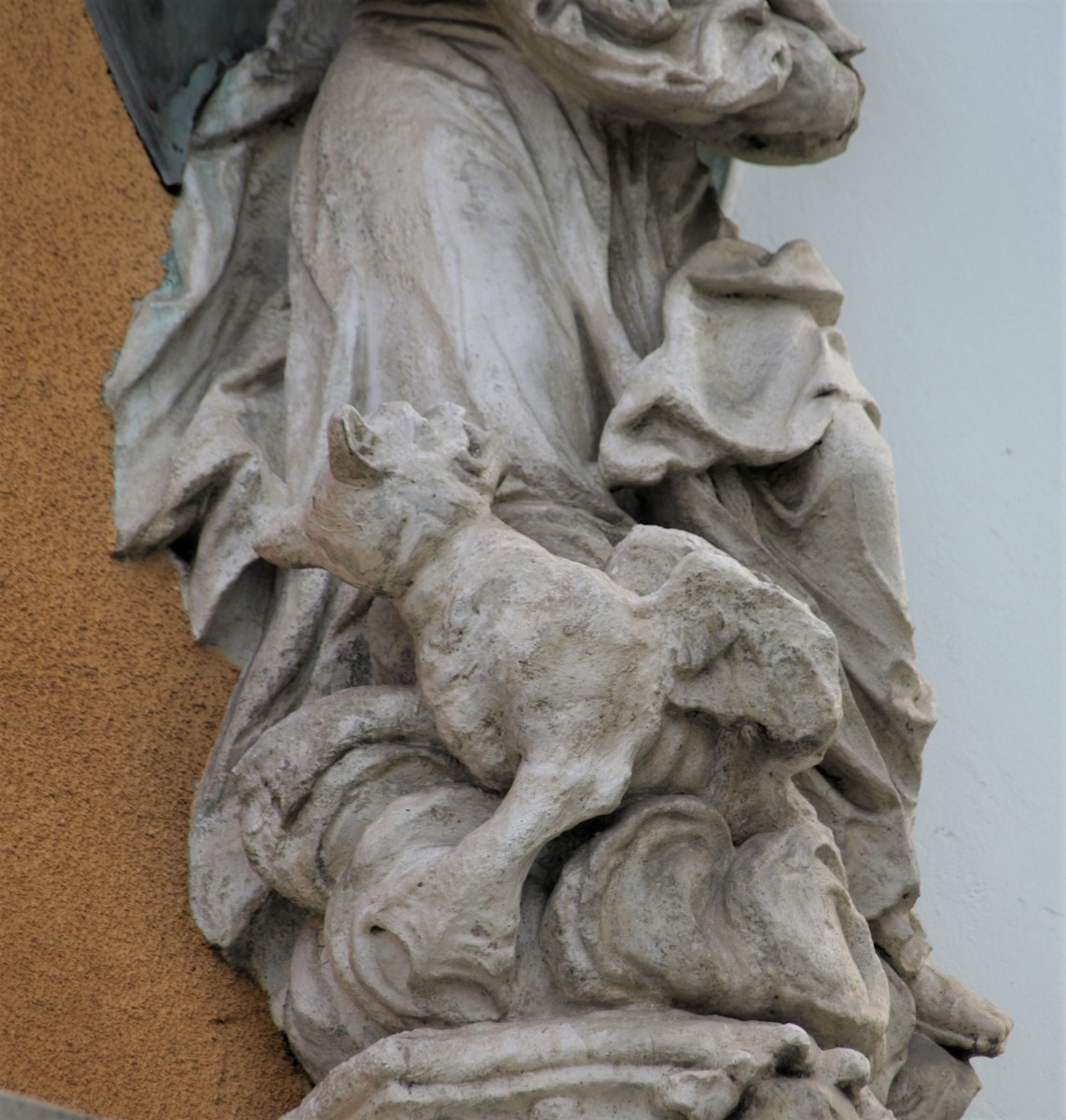 In 1961 the sculpture was restored with replacements by Heinz Hiebl. At the same time, a copper roof was attached.3 Nevertheless, the surface had already suffered from weathering and was partially smoothened.