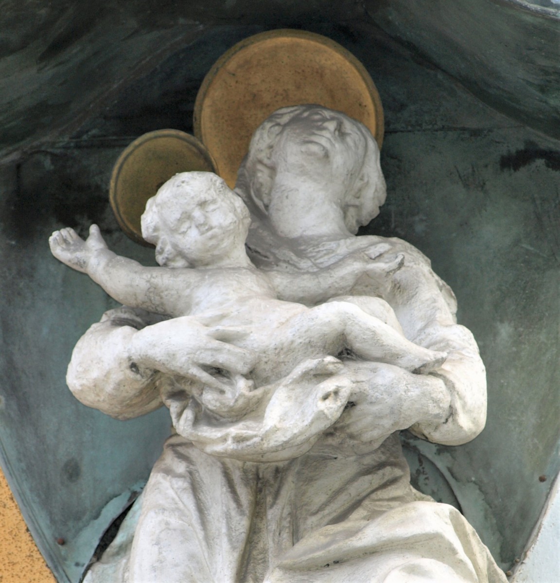 Mary with baby Jesus, Detail, Mary Immaculate, façade of Albrechtgasse 7, Graz (photo by Anja Lindbichler, 2018)