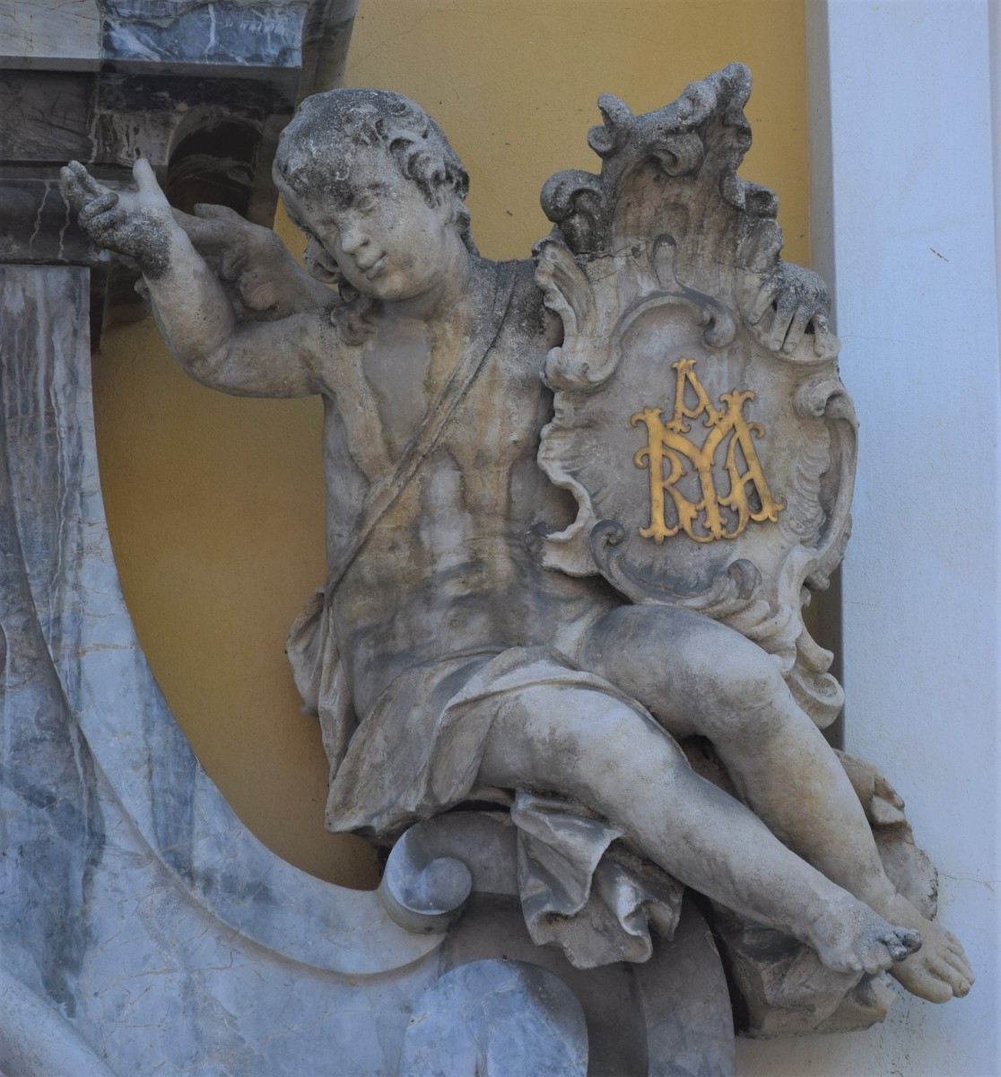 - Putto with cartouche (left), portal Basilica Mariatrost, Graz (photo by Christina Pichler, 2018)