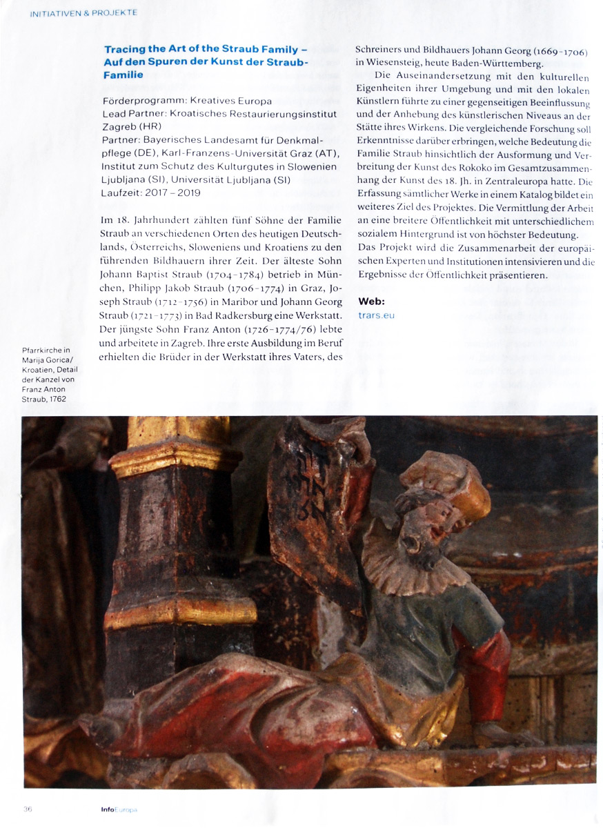 Projekt “Tragom umjetnosti obitelji Straub” predstavljen je u vodiču “Kulturführer Mitteleuropa” (2/2018) kao zanimljiv europski projekt.