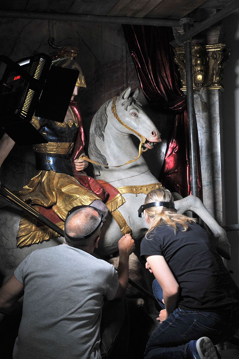 Istraživanja glavnog oltara u kapeli sv. Juraja u Minhen-Bogenhausenu je bio prvi u nizu istraživanja u bavarskim crkvama. Lea Rechenauer, studentica programa za konzervaciju i restauraciju Akademije za umjetnost i dizajn u Stuttgartu, i Rupert Karbacher, koordinator bavarskog projektnog tima, istraživali su od 1. kolovoza s entuzijazmom rad Johanna Baptista Strauba te pokušavali otkriti sličnosti i razlike u njegovu radu. Oni će rezultate do kojih su došli tijekom istraživanja prodiskutirati s drugim članovima bavarskog tima, dr. sc. Martinom Mannewitzom i diplomiranim konzervatorima Andreasom Müllerom i Judith Schekulin.