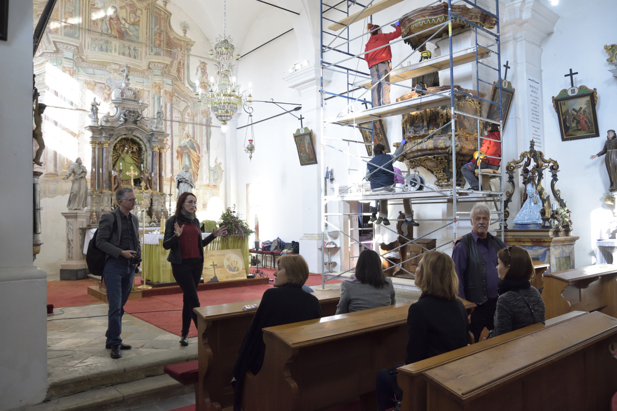 Im Laufe des Tages wurde ein Fachbesuch für Projektteilnehmende organisiert, besucht wurde die Pfarrkirche Maria Heimsuchung in Marija Gorica, in der die Kanzel von Franz Anton Straub gerade restauriert wird. Es gab auch einen Besuch der Pfarrkirche des Hl. Franz Xaver in Vugrovec, die drei Altäre von Franz Anton Straub birgt, des Gemeindehauses sowie der Kapelle des Hl. Michaels in derselben Pfarre. Des Weiteren eine geführte Tour durch die Ausstellung Höhepunkt der barocken Ära: Die Kunst der Straub-Familie in der ehemaligen Erzdiözese Zagreb.