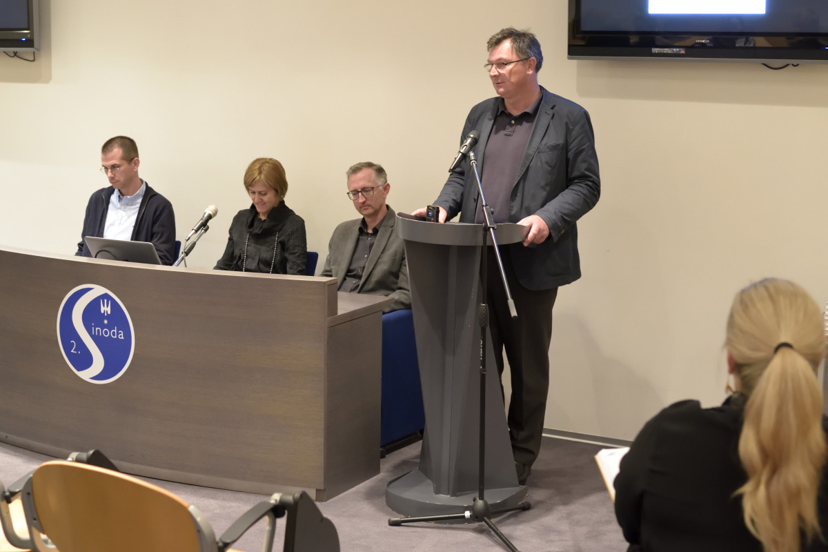 Mons. Nedjeljko Pintarić, Gemeindepfarrer der Kirche St. Markus und Direktor der Schatzkammer der Kathedrale von Zagreb und des Diözesanmuseums, begrüßte die Anwesenden im Namen der Gastgeberin, der Erzdiözese Zagreb, auf deren Territorium sich die meisten Kunstwerke Kroatiens befinden. Davor Trupković, Assistent des Kulturministers der Republik Kroatien, hielt die Eröffnungsrede, in der er die erfolgreiche Durchführung des internationalen Projekts lobte, insbesondere in Hinblick auf die kurzen Deadlines, die von den von der Europäischen Union mitbegründeten Wettbewerbsmerkmalen festgelegt wurden. Dr. Tajana Pleše, Direktorin des Kroatischen Instituts für Konservierung, betonte, dass neben der Monografie, auch die Projektwebsite mit dem Katalog der Kunstwerke, deren Domain weiterhin vom Institut finanziert wird, als Teil des Projektergebnisses bleibt. Die Inhalte der Monografie wurden von einem der Gutachter, Dr. Danko Šourek, Assistenzprofessor des Instituts für Kunstgeschichte der Universität Zagreb, und einem der Herausgeber, Professor Dr. Matej Klemenčič vom Institut für Kunstgeschichte der Universität Ljubljana, vorgestellt. Schließlich dankte die Projektleiterin, Dr. Ksenija Škarić, allen Teilnehmenden des Projekts sowie allen, die zum Projekt und zur Monografie etwas beigetragen haben.