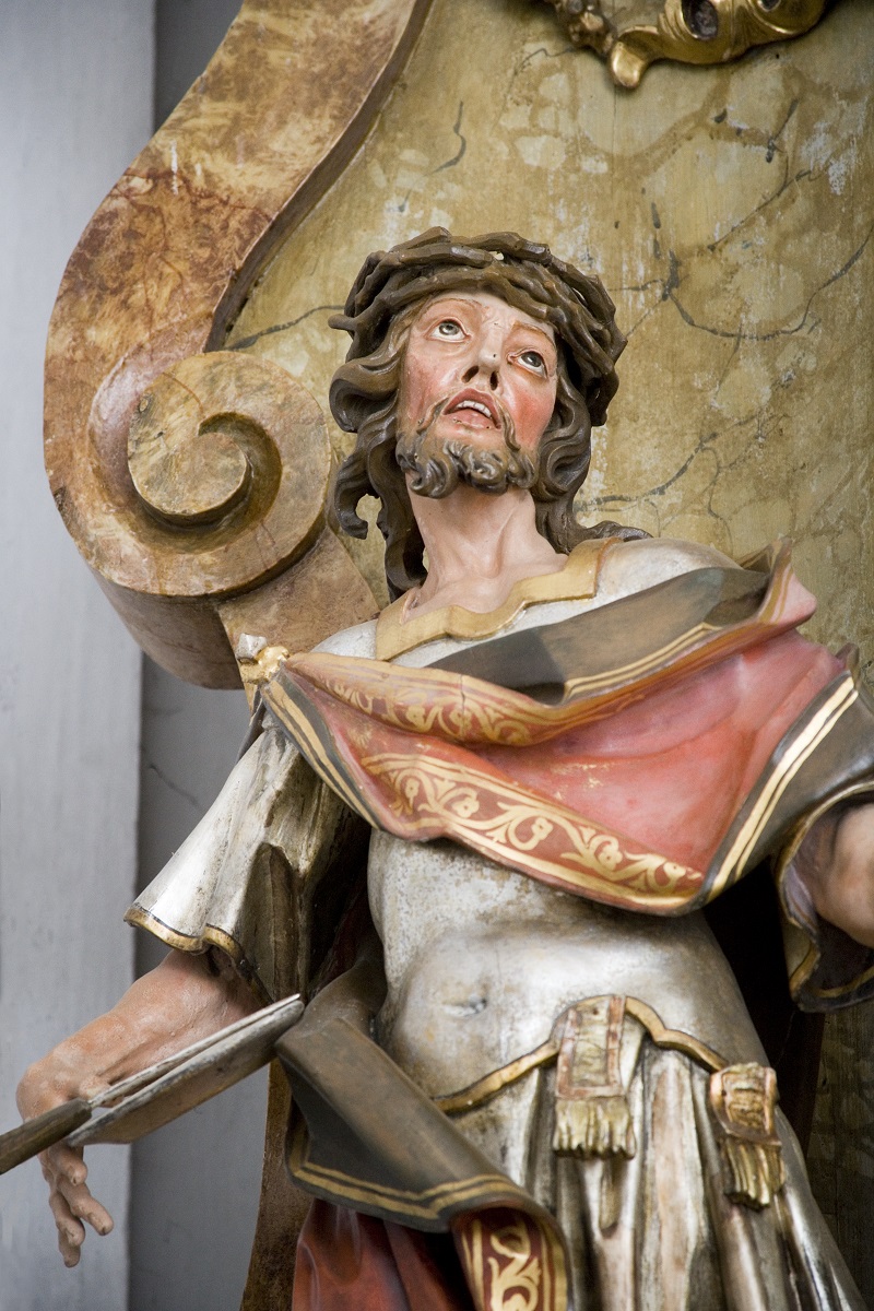 The sculpture of St Bartholomew the Apostle (Institute for the Protection of Cultural Heritage of Slovenia, photo by Valentin Benedik, 2018)