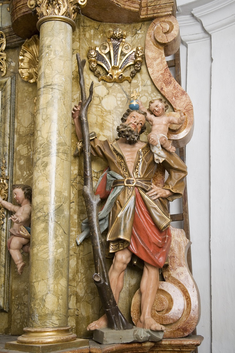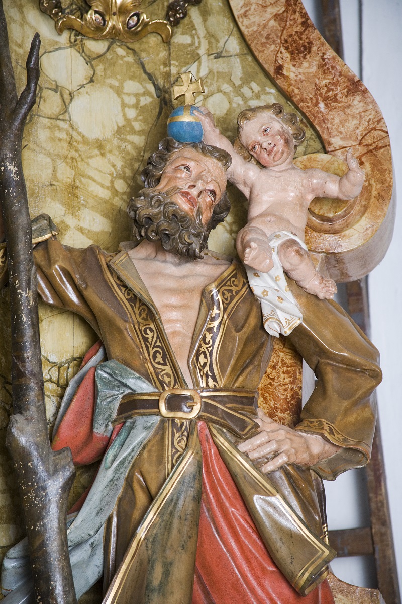 The sculpture of St Christopher (Institute for the Protection of Cultural Heritage of Slovenia, photo by Valentin Benedik, 2018)