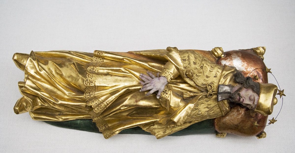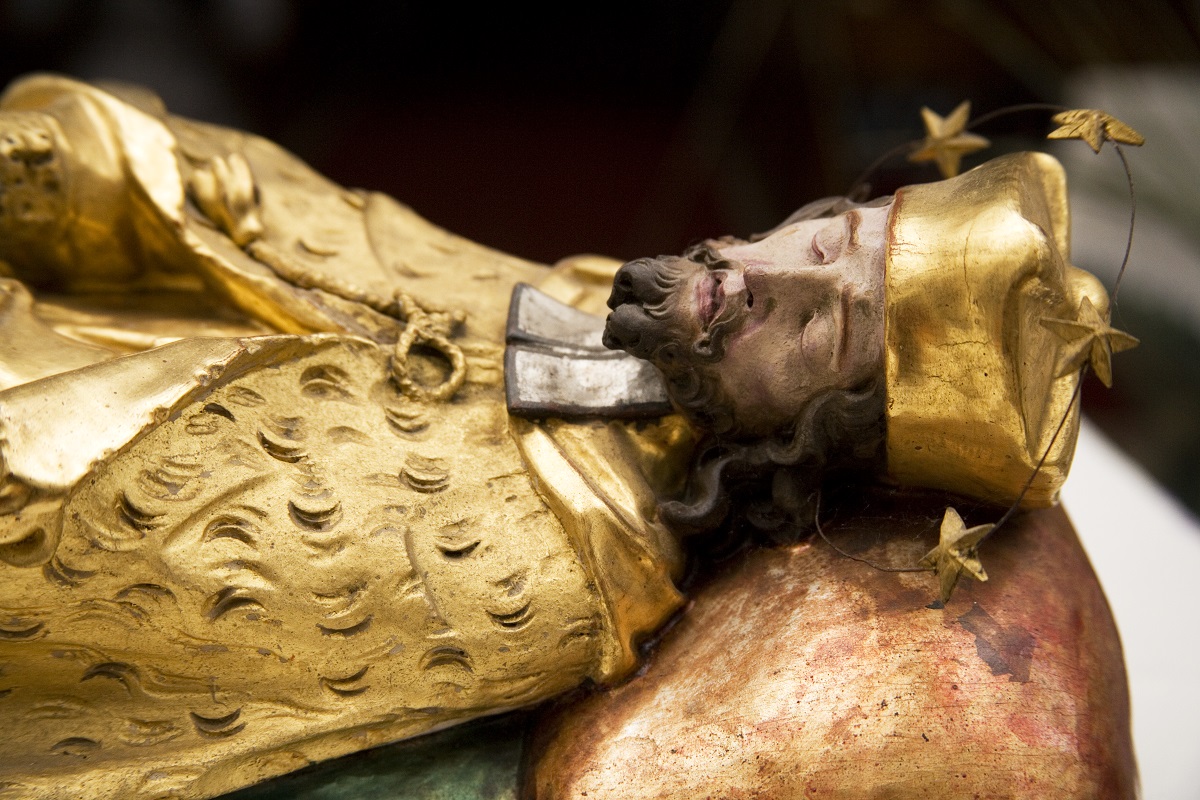 The miniature sculpture of St John of Nepomuk, detail (Institute for the Protection of Cultural Heritage of Slovenia, photo by Valentin Benedik, 2018)