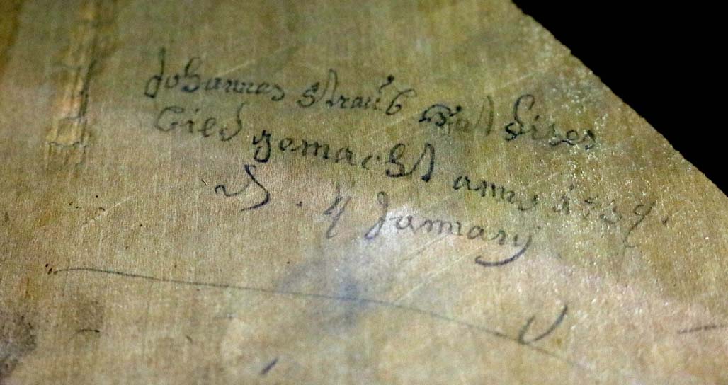 - Johannes straub Hat dises/bild gemacht anno 1739./den 4 Januarij (on the inner side of the pedestal); Engl. transl.: Johannes straub made this / image in the year 1739 / on the 4th of January)