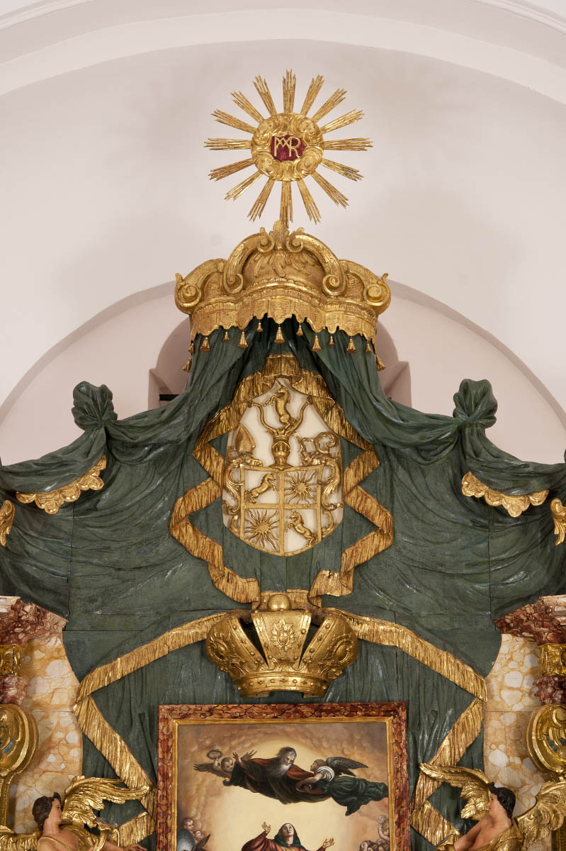 - IHS (monogram in the repolychromy on the lower part of the tabernacle, removed in the 2003–2013 restoration)