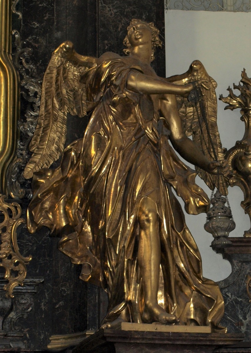 Angel (left), high altar, pilgrimage church Mariahilf, Graz (photo by Anja Lindbichler, 2018)