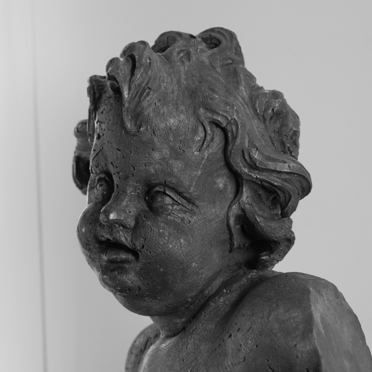 We can confirm the attribution of the sculpture to Joseph Straub with the stylistic comparisons: in his oeuvre we can find several similar chubby angels with double chin, open mouth, round nose, big open eyes with distinct upper eyelid and curly hair (the similarities are especially evident when this angel is compared to those from the high altar from Studenci and the organ case in Sladka Gora).