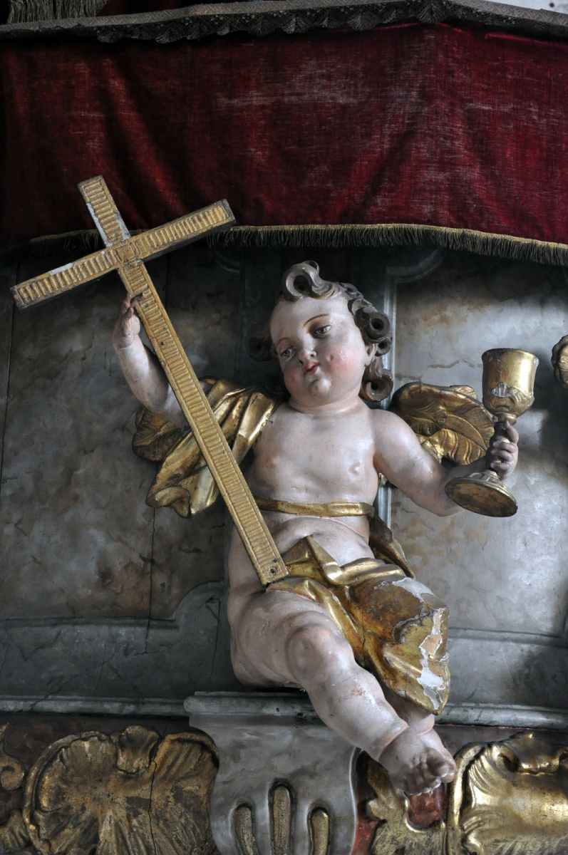The statue of a putto with a chalice and a cross (photo by Valentina Pavlič, 2016)