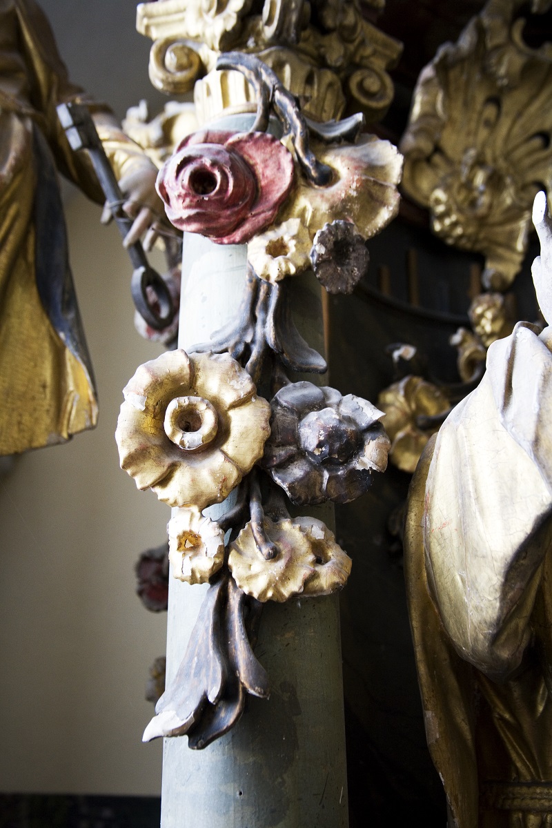 - The ornamentation of the altar (Institute for the Protection of Cultural Heritage of Slovenia, photo by Valentin Benedik, 2018)