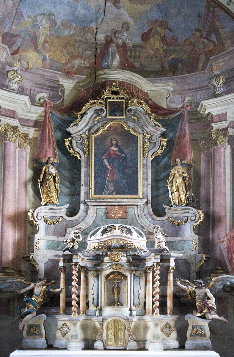 The high altar in the Parish Church of St Margaret the Virgin in Selnica ob Dravi (Institute for the Protection of Cultural Heritage of Slovenia, photo by Valentin Benedik, 2018)