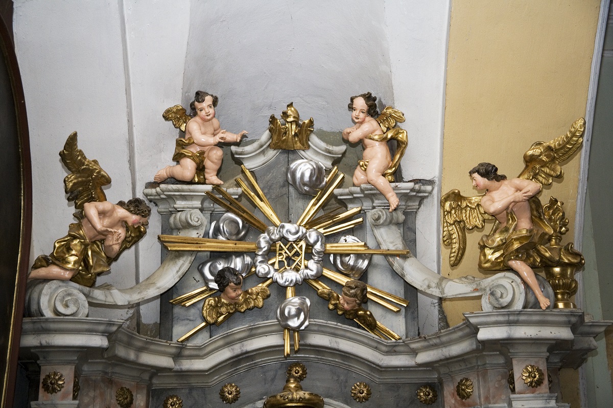- The upper part of the side altar of the Virgin Mary in Malečnik (Institute for the Protection of Cultural Heritage of Slovenia, photo by Valentin Benedik, 2018)