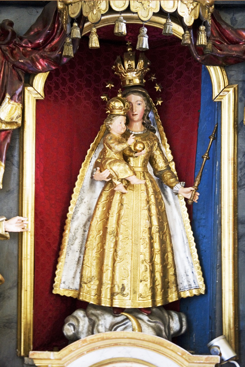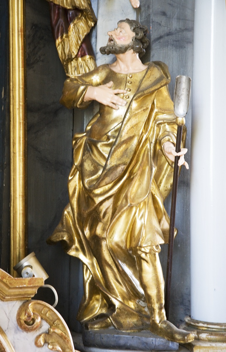 The side altar of the Virgin Mary is placed in the first chapel on the left side of the church. On the left of the sculpture of the Virgin Mary and Child, there is a sculpture of St Anne, and on the right of St Joachim. Both sculptures show characteristics of Philipp Jakob Straub’s personal style: long, thin faces, long noses, big eyes, rich dresses and elegant postures.