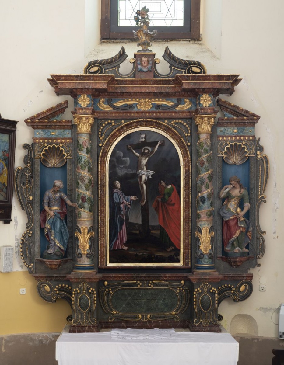 The sculptures of St Nicodemus and St Mary Magdalene are placed in the side niches on the retable from the 17th century, which was probably originally consecrated to St Anthony of Padua, but in Čvrstec changed to The Holy Cross.4