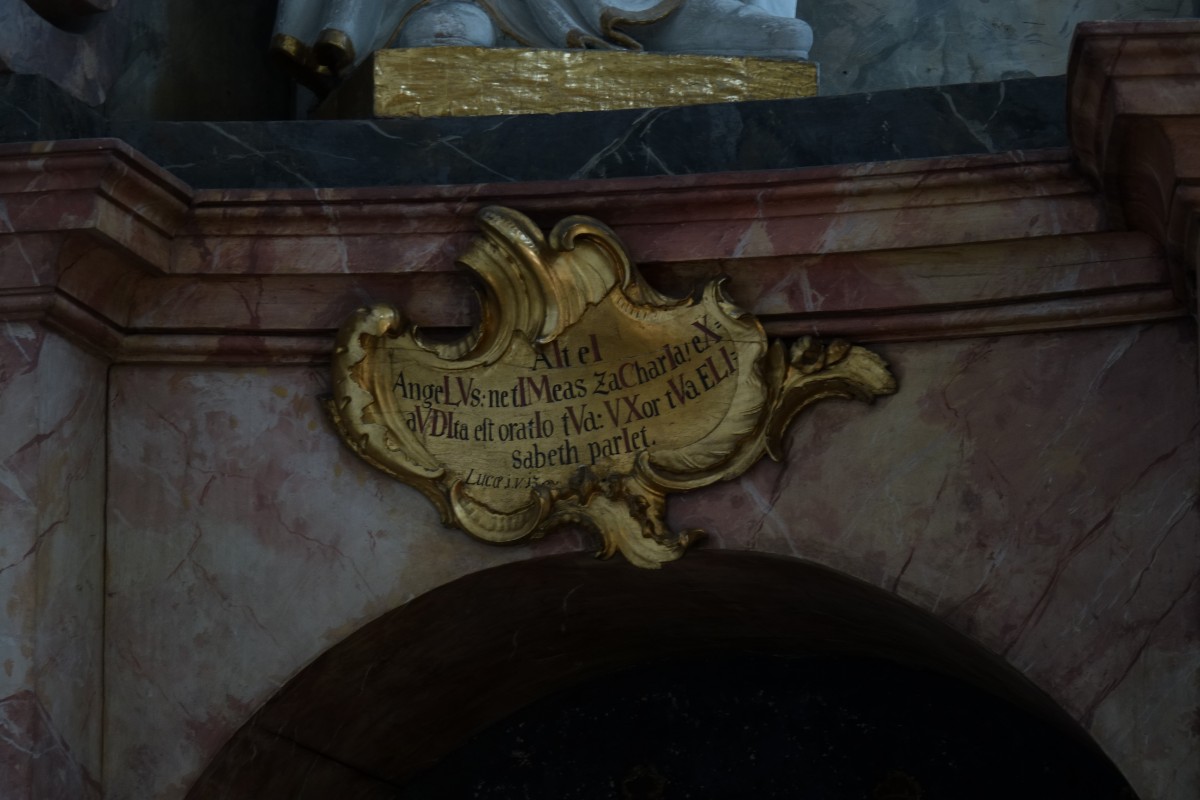 - AIteI AngeLVs:netIMeas zaChrIarIa! eX=aVDIta est oratIo tVa: VXor tVa ELI=sabeth parlet. Lucae J.v.13 (cartouche under the statue of Zacharias)