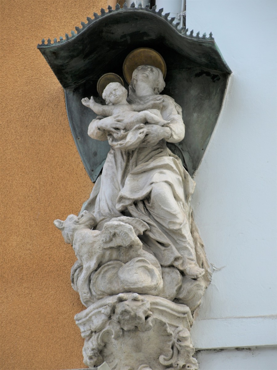 The sculpture of Mary Immaculate on the façade of Albrechtgasse 7, Graz